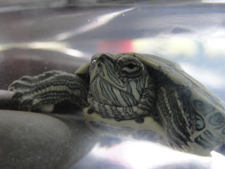 Well, when I went to Chicago about a month ago on a church mission trip, we went on a short trip to China Town. Some of my friends and I were exploring the shops, when three girls from our group came running down the street. "WE BOUGHT TURTLES!" I was skeptical...until they were right next to me showing off their tiny reptiles. They named the turtles Chyna, Mojo Jojo, and Bob.